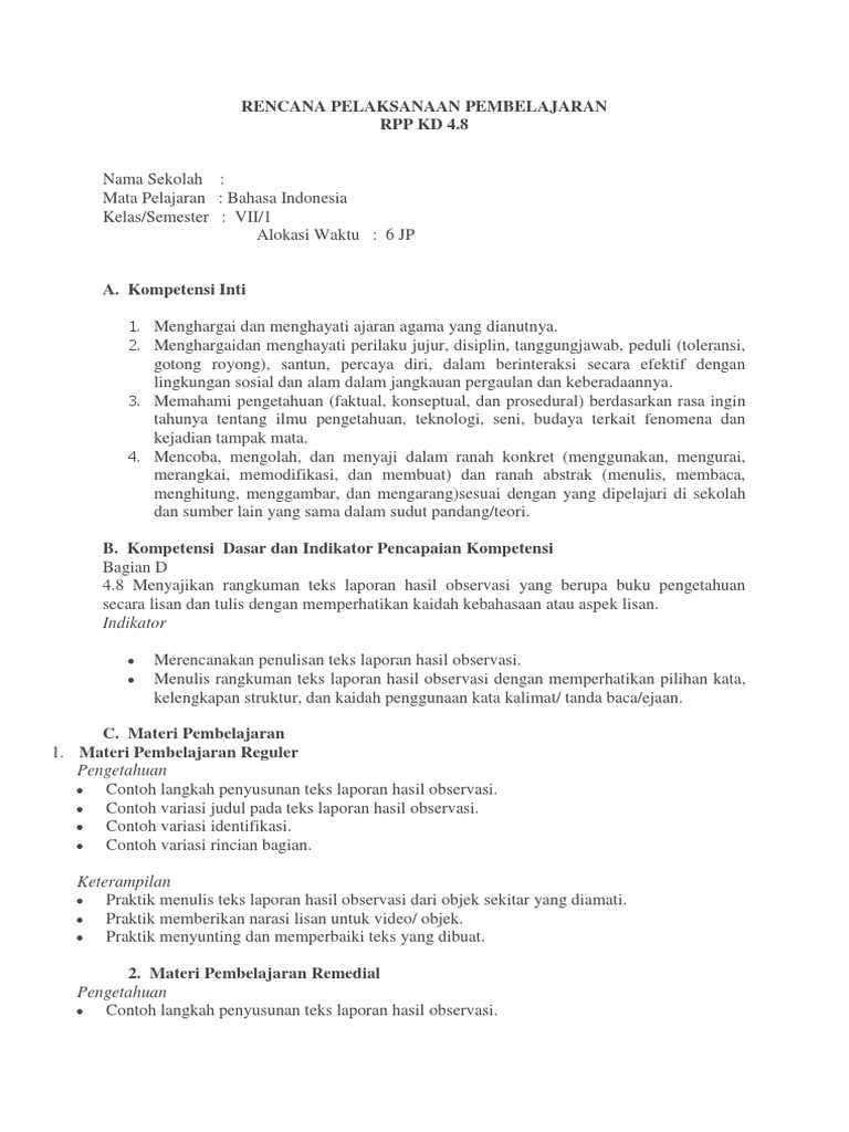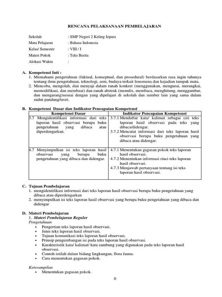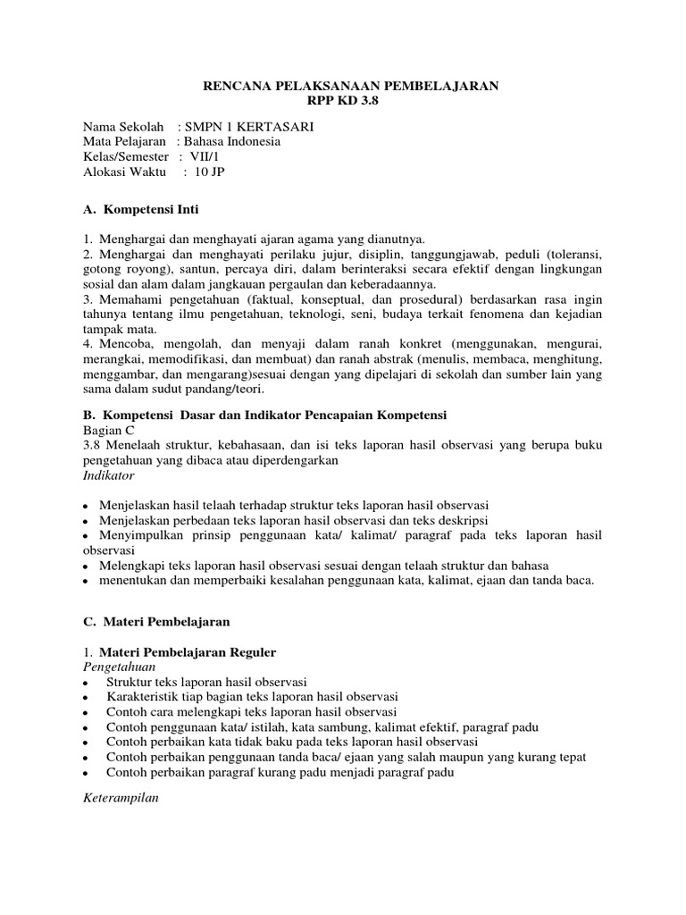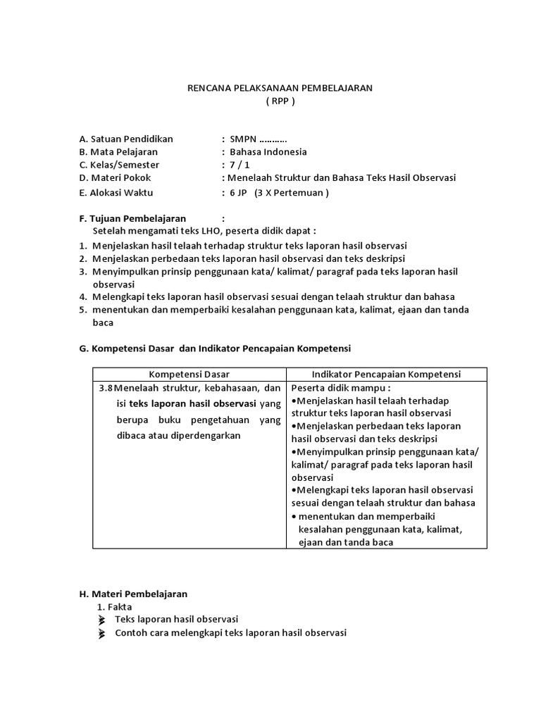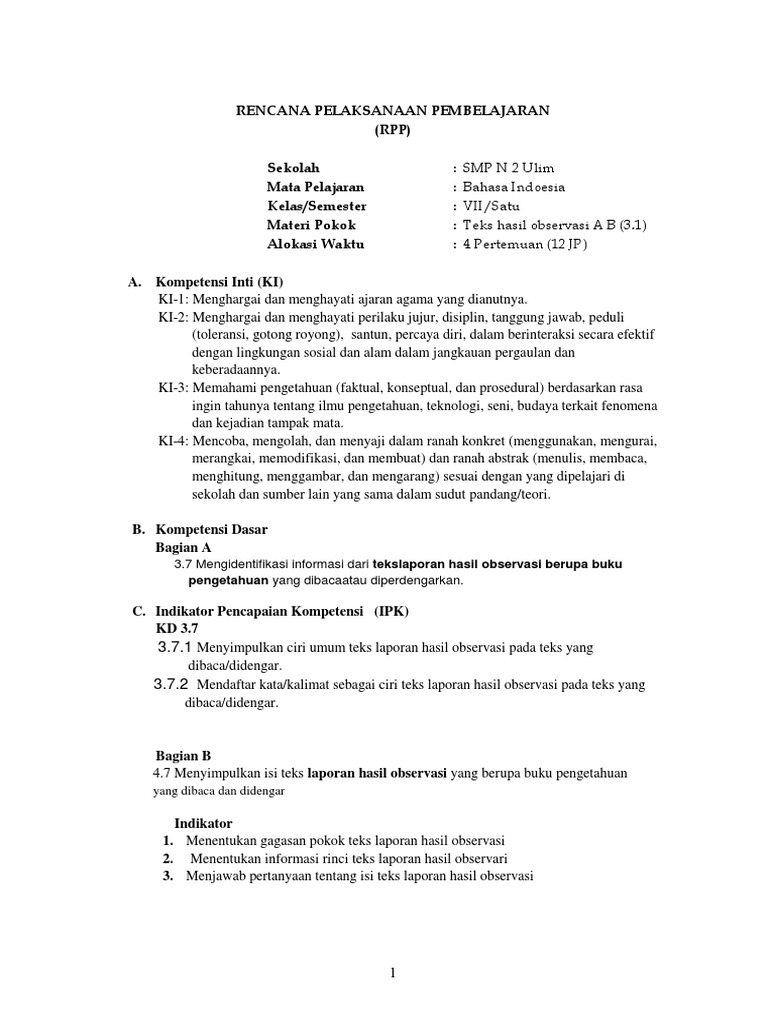 PDF) Contoh RPP Laporan Hasil Observasi SMP Kelas VII | isnaini shaleh - Academia.edu