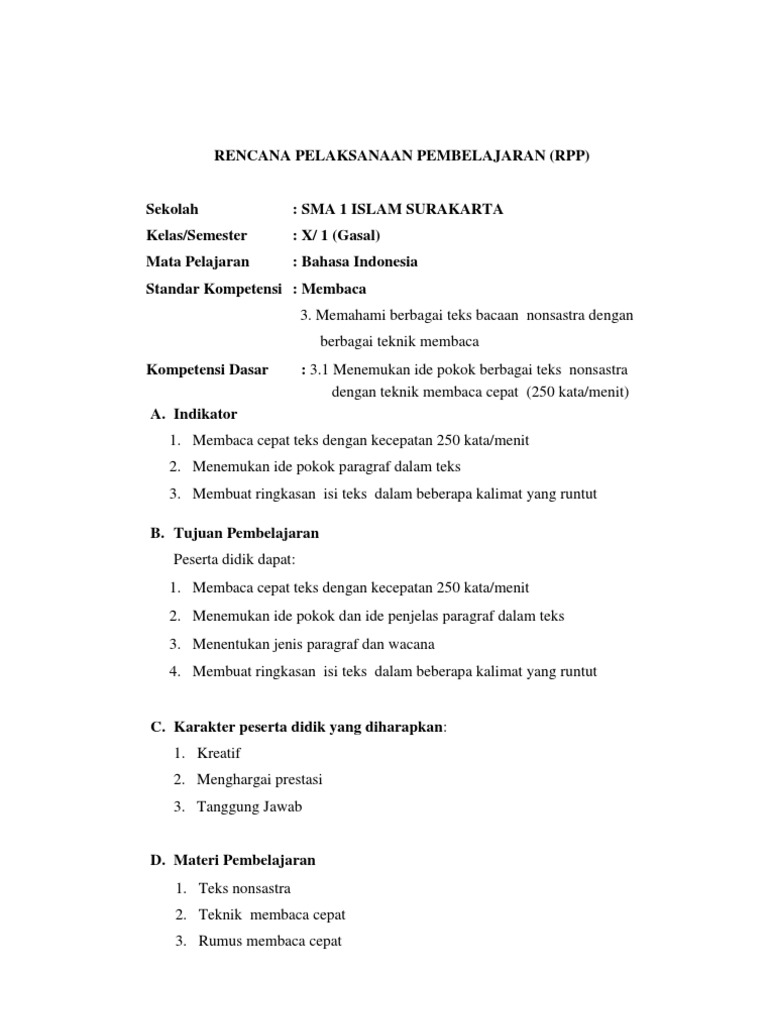 RPP X_Membaca Cepat