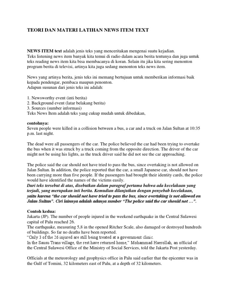 DOC) Contoh News Item | ragil galuh - Academia.edu