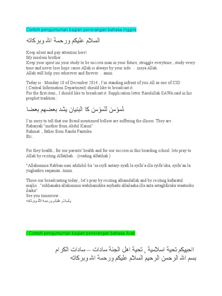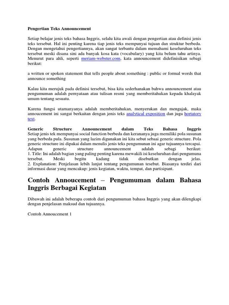 Contoh Announcement Singkat Dan Artinya | Kumpulan Soal pelajaran 5
