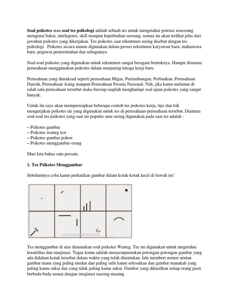 Soal Psikotes Atau Soal Tes Psikologi Adalah Sebuah Tes Untuk Mengetahui Potensi Seseorang Mengenai Bakat