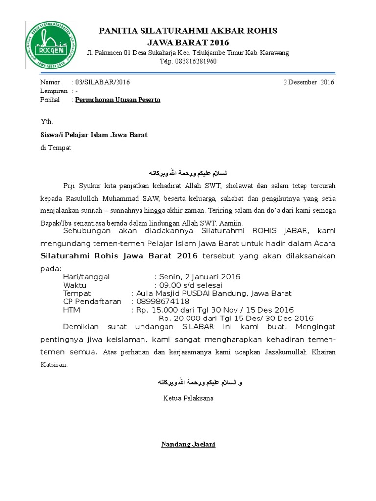 Surat Undangan Rohis 2016