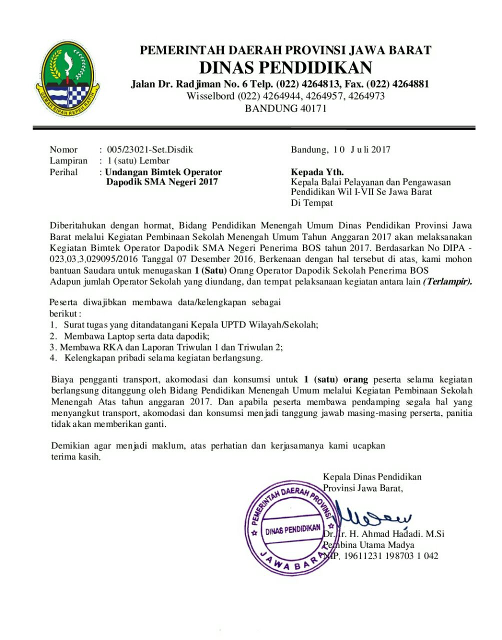 UNDANGAN BIMTEK OPERATOR DAPODIK SMA TAHUN 2017 | Dapodik SMA-Karawang