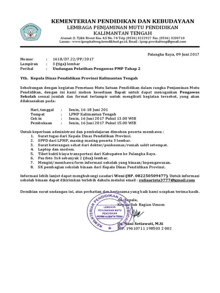 Undangan Bimtek Pengawas PMP Tahap 2 Provinsi