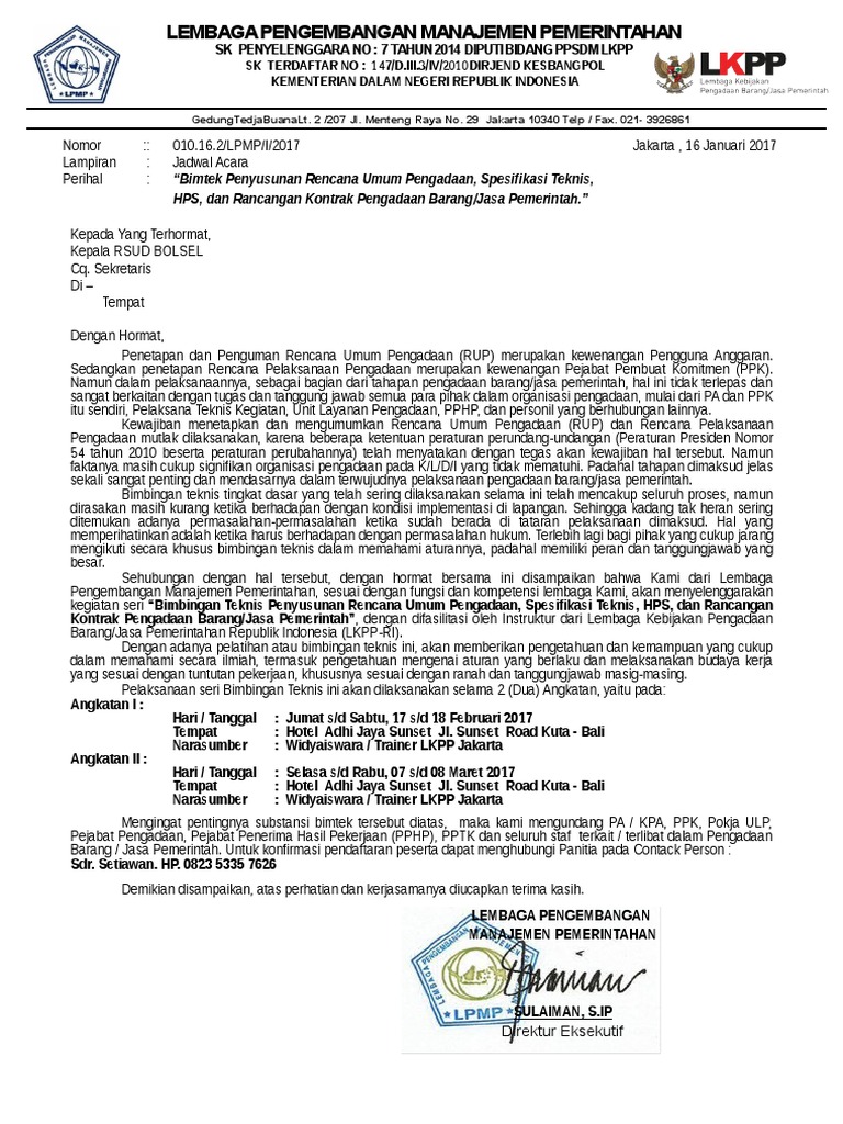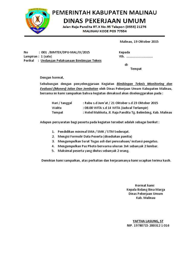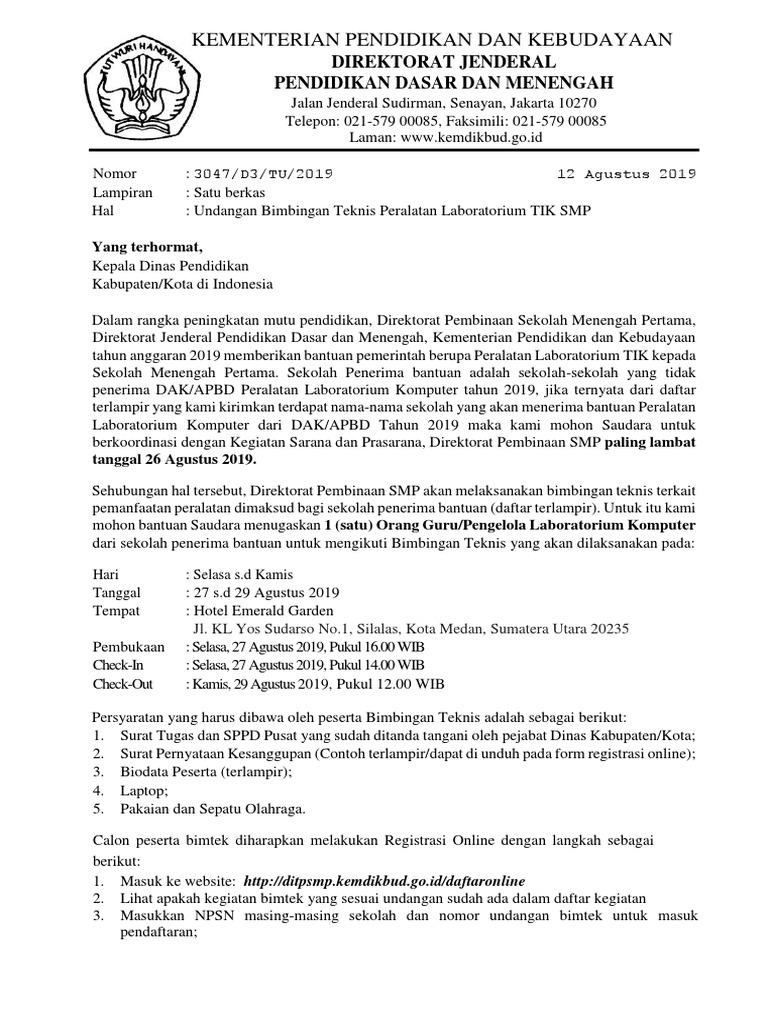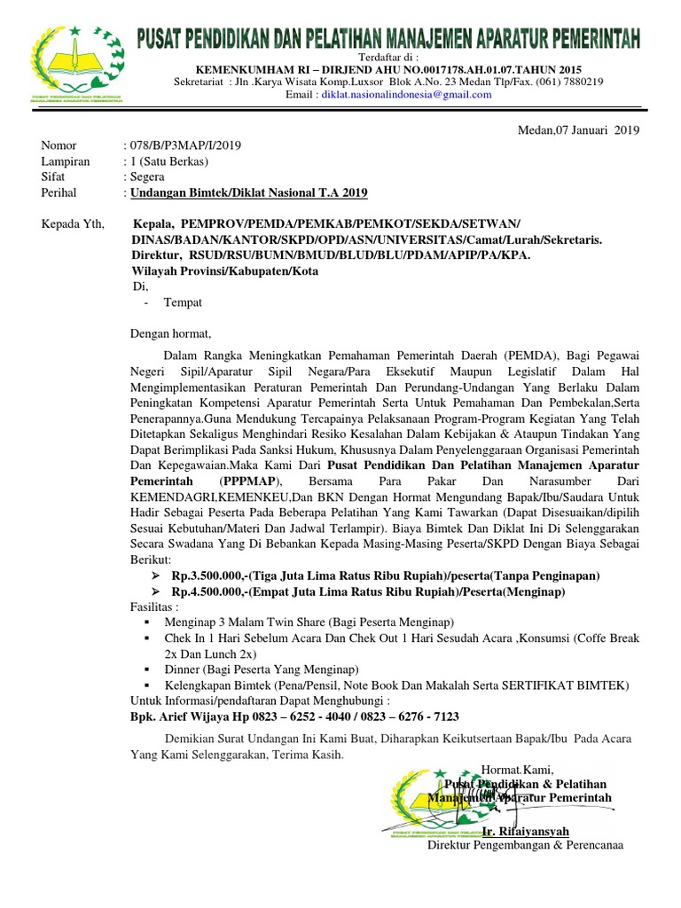SURAT UNDANGAN BIMTEK PTSP DI BIDANG… - Pusat Pendidikan dan Pelatihan BKPM | Facebook