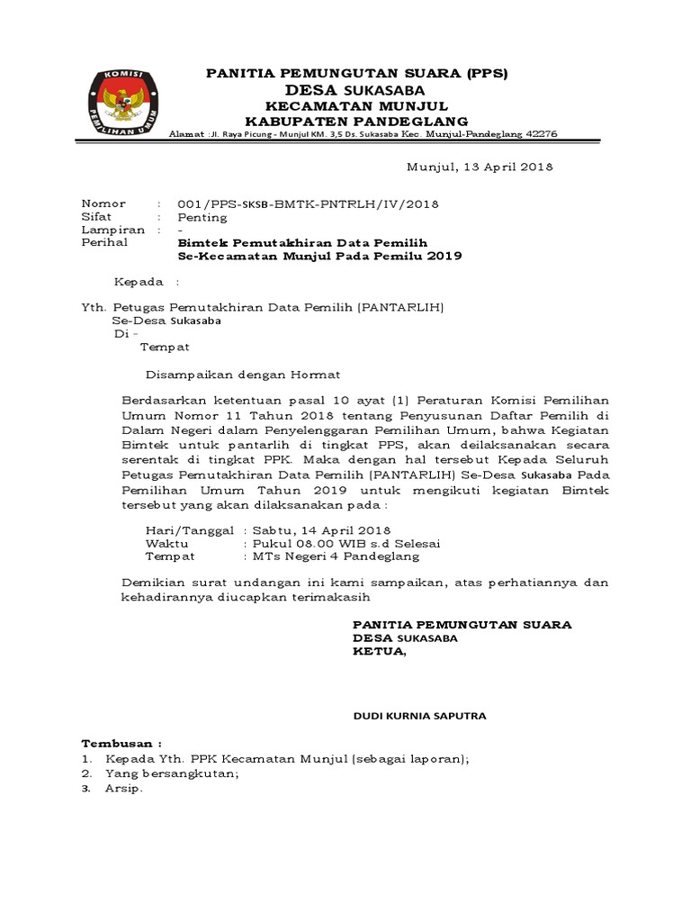 Undangan Nomor 003/ PPK. BBT/ IV/ 2019: Bimtek Pungra Tungra KPPS Kecamatan Bubutan pada Pemilu Tahun 2019 - KARANG TARUANA MAHAMERU RT.15