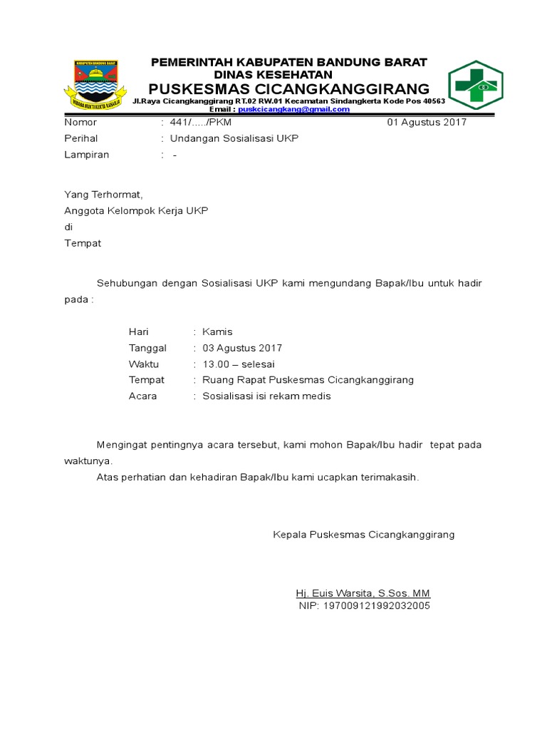 Surat Undangan Sosialisasi Intern UKP