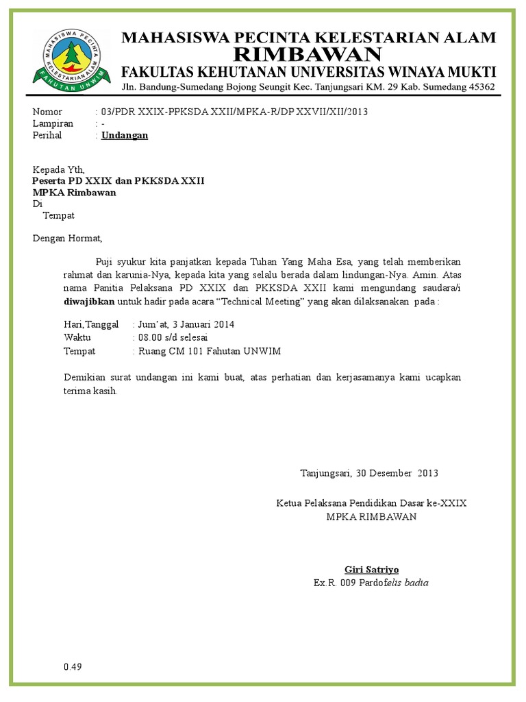 Contoh Surat Undangan Rapat Resmi Organisasi - Contoh Surat