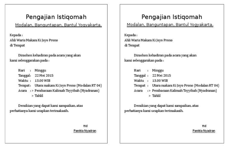 Contoh Undangan Syukuran Nyadran Pernikahan | Belajar Office