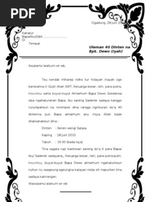 Contoh Surat Undangan Uleman Tahlil 40/100 Hari Bahasa Sunda Doc