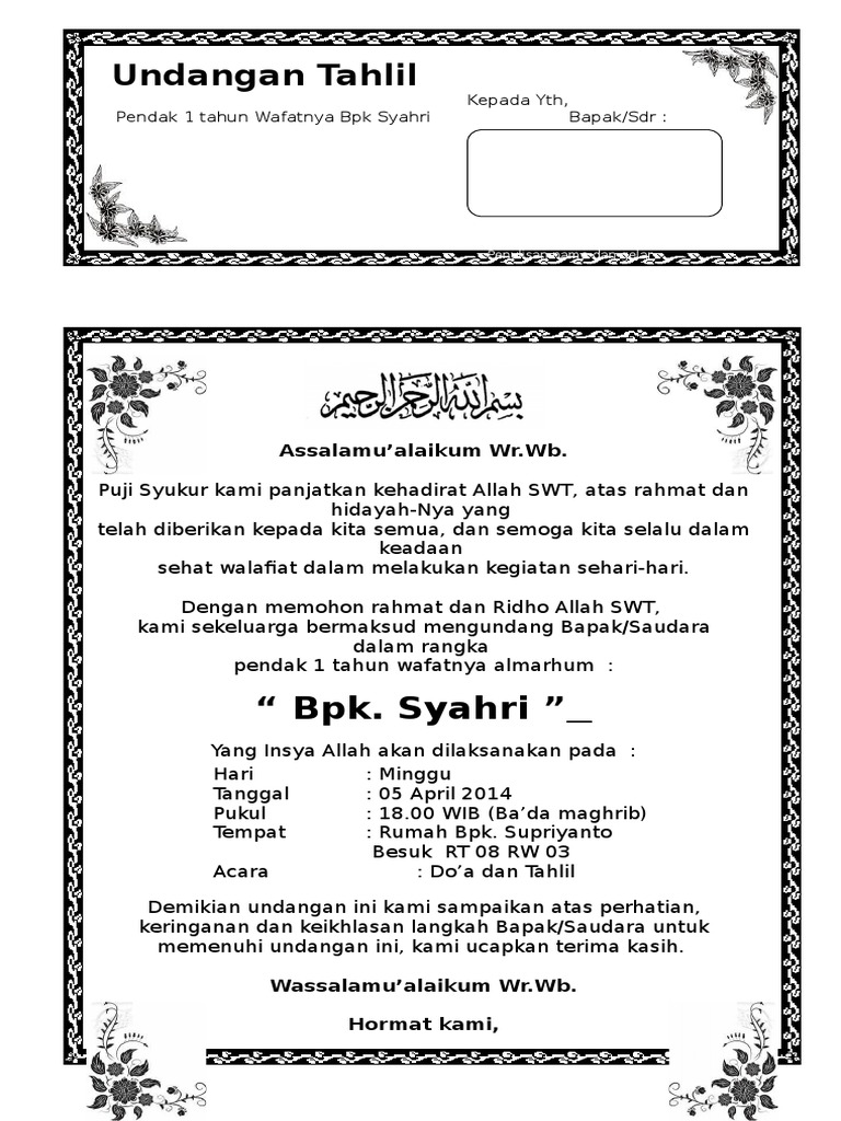 DOC) Contoh Undangan Tahlilan 40 Hari Meninggalnya | Haekal Iqbal - Academia.edu