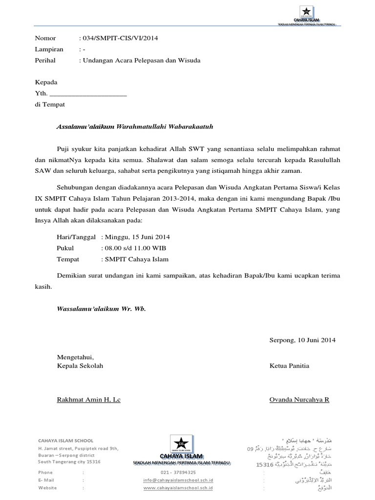 Contoh Surat Undangan Wisuda Untuk Kepala Sekolah Dalam Bahasa Inggris - Bagikan Contoh