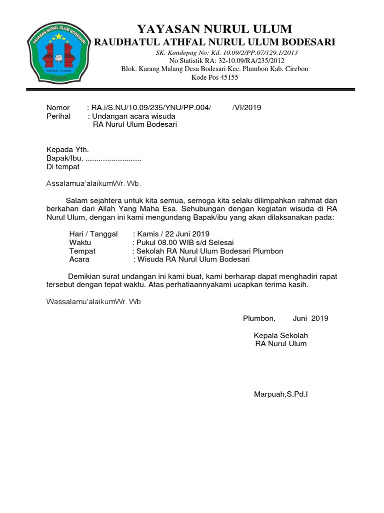 Contoh Surat Undangan Wisuda Paud