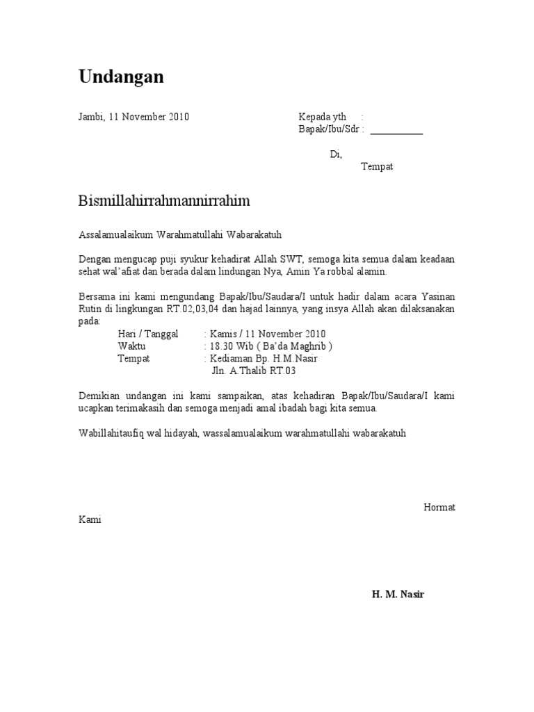 Contoh Surat Undangan Yasinan Dan Tahlil Doc
