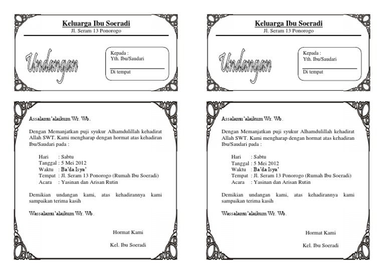 Contoh Undangan Tahlil 2 Lembar Contoh Isi Undangan – Cute766