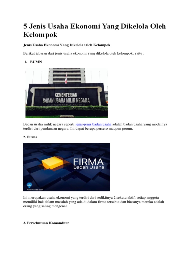 Jenis Usaha Ekonomi Yang Dikelola Sendiri Ataupun Kelompok - gurune.net