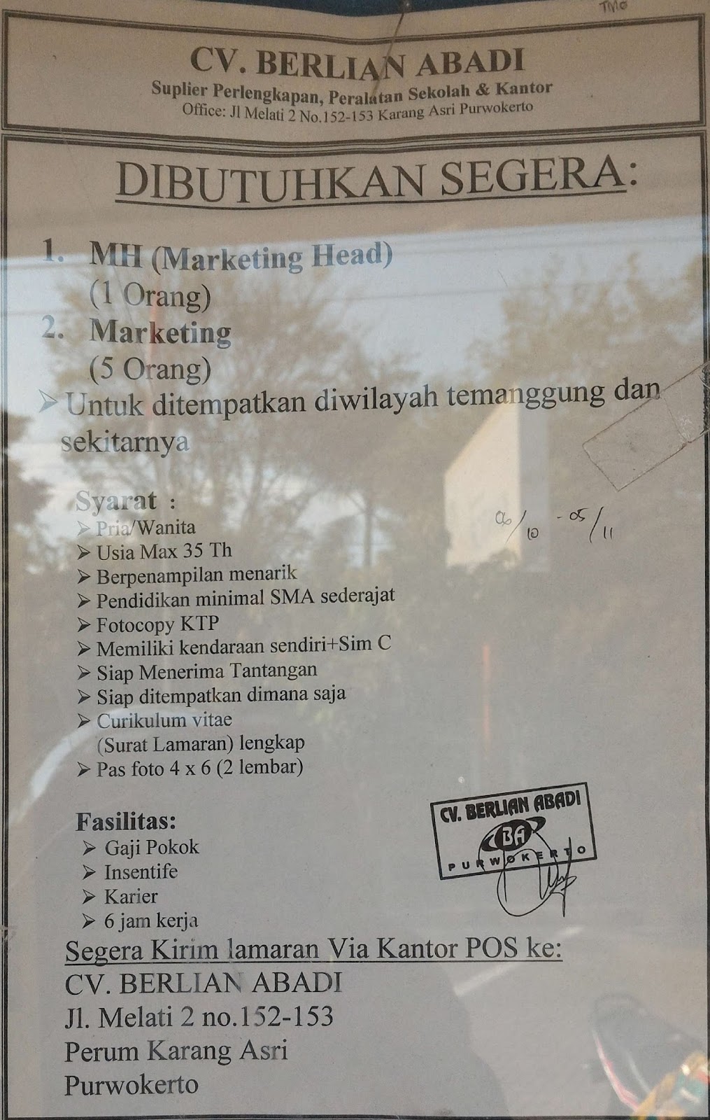 Lowongan Kerja Temanggung & sekitarnya: CV.BERLIAN ABADI