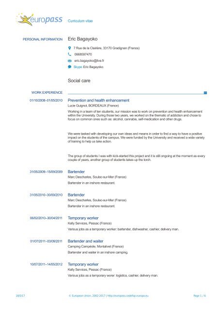 PDF) CV ESP Europass 20180504 Mukalay EN(1) | Yoel Kime Mukena Mukalay - Academia.edu