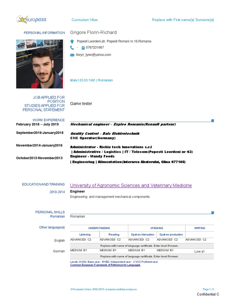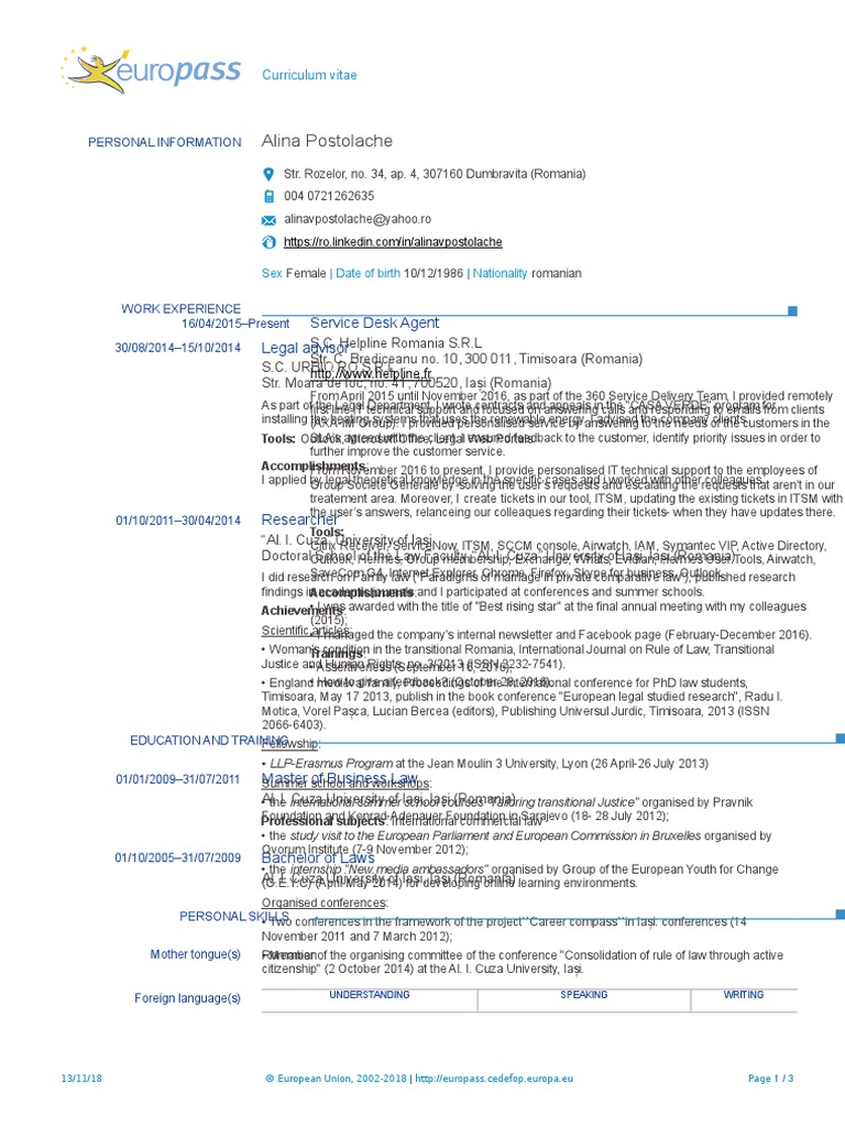 Europass Curriculum Vitae - PDF Free Download