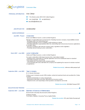 23 Printable europass cv online Forms and Templates - Fillable Samples in PDF, Word to Download | PDFfiller