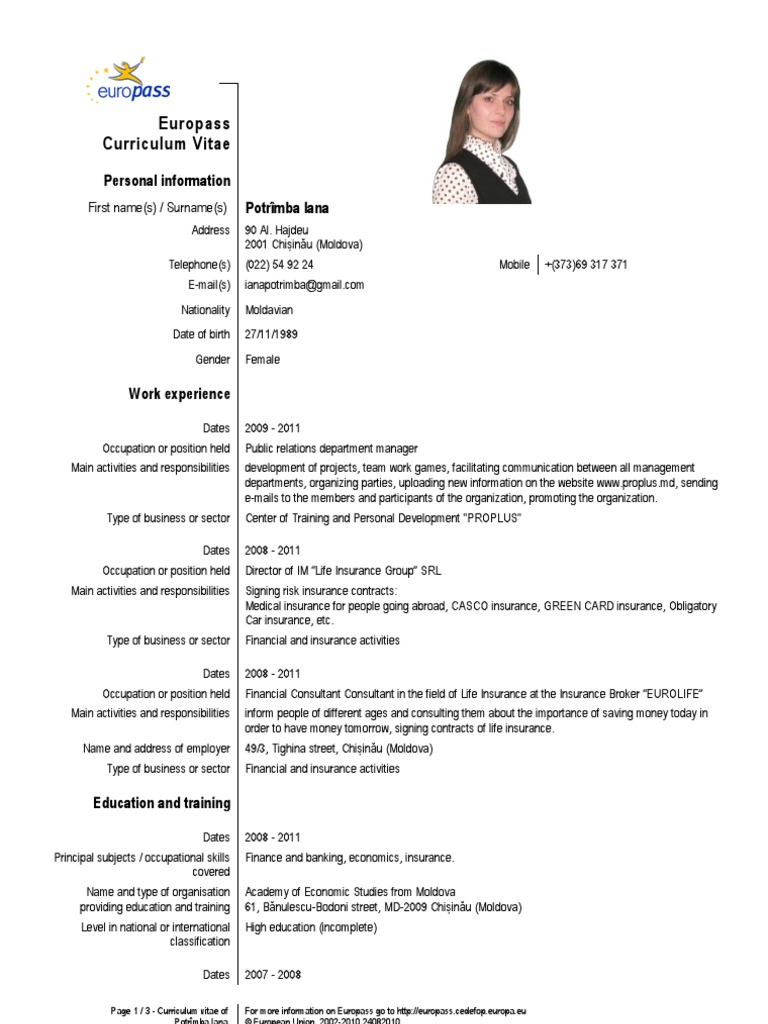 Sample Of Cv European Format — How to create your Europass CV