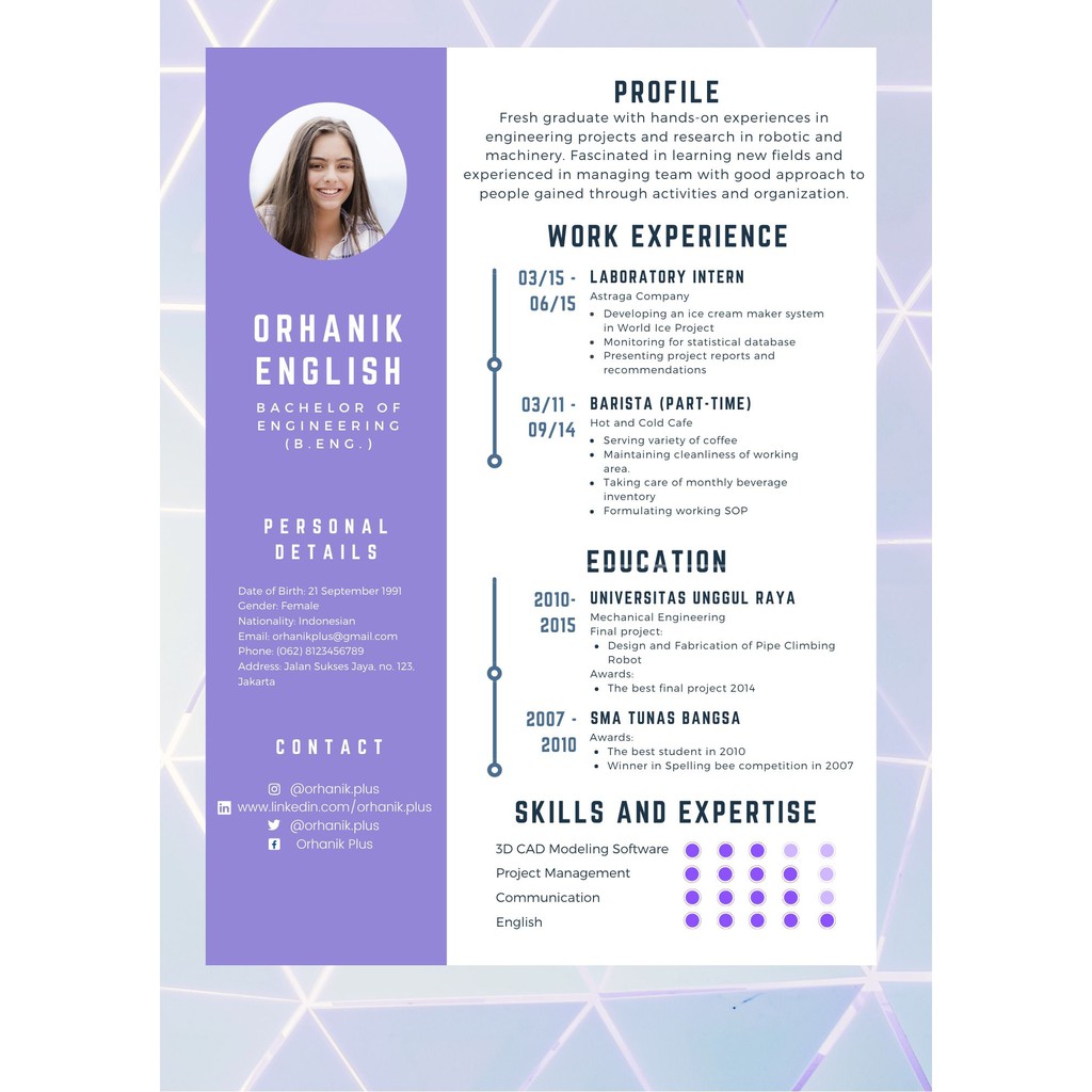 contoh CV fresh graduate yang menarik | Creative cv template, Cv kreatif, Desain cv