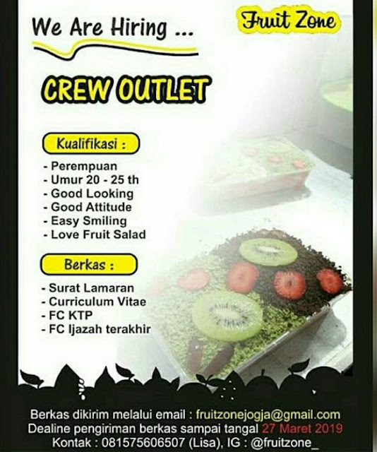 LOWONGAN KERJA CREW OUTLET FRUIT ZONE di YOGYAKARTA - Bursa Lowongan Kerja