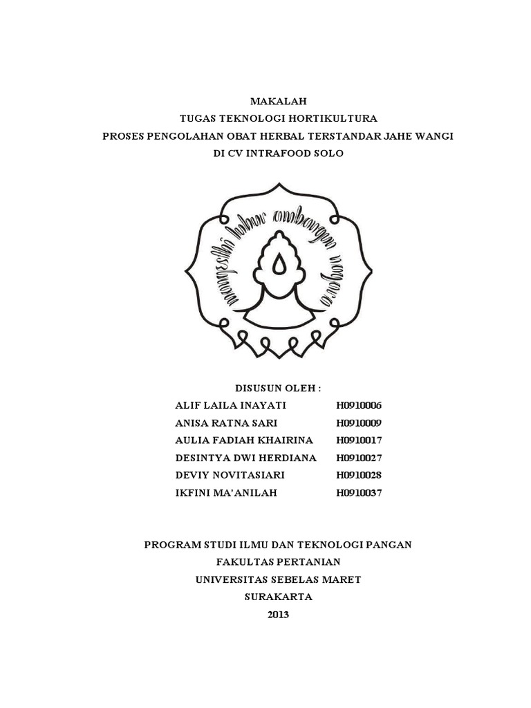 MAKALAH TUGAS TEKNOLOGI HORTIKULTURA PROSES PENGOLAHAN OBAT HERBAL TERSTANDAR JAHE WANGI DI CV INTRAFOOD SOLO DISUSUN OLEH : ALI
