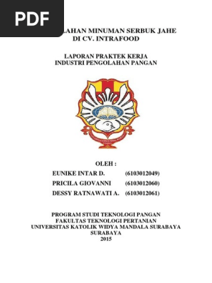 PENGOLAHAN MINUMAN SERBUK JAHE DI CV. INTRAFOOD LAPORAN PRAKTEK KERJA INDUSTRI PENGOLAHAN PANGAN - PDF Free Download