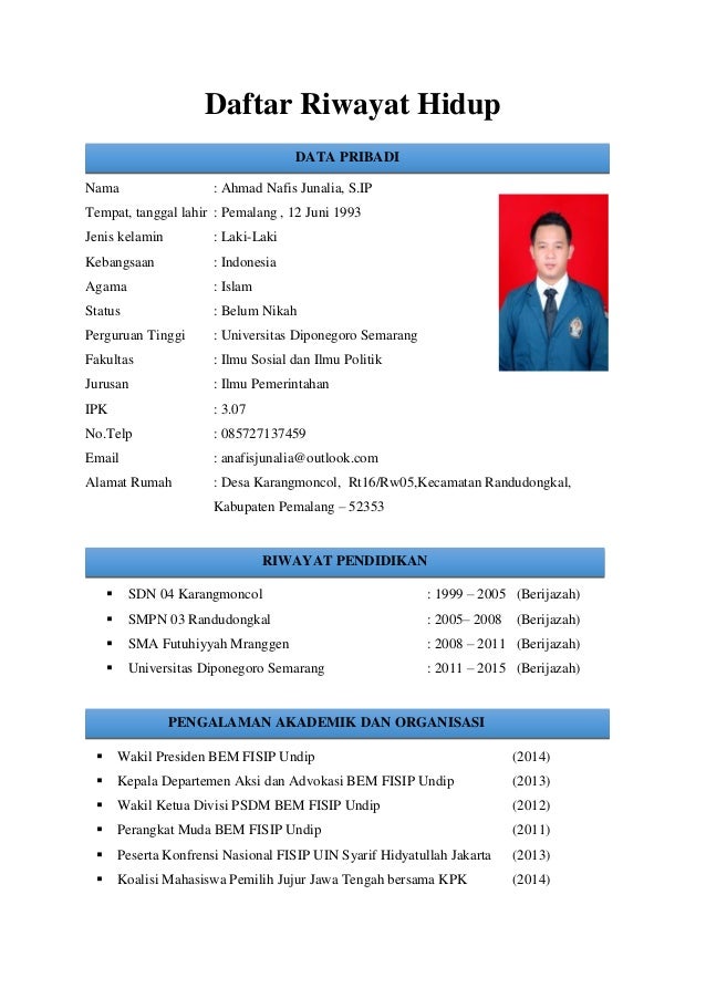 Contoh Cv Lamaran Kerja Untuk Fresh Graduate | Riwayat hidup, Pendidikan, Hidup