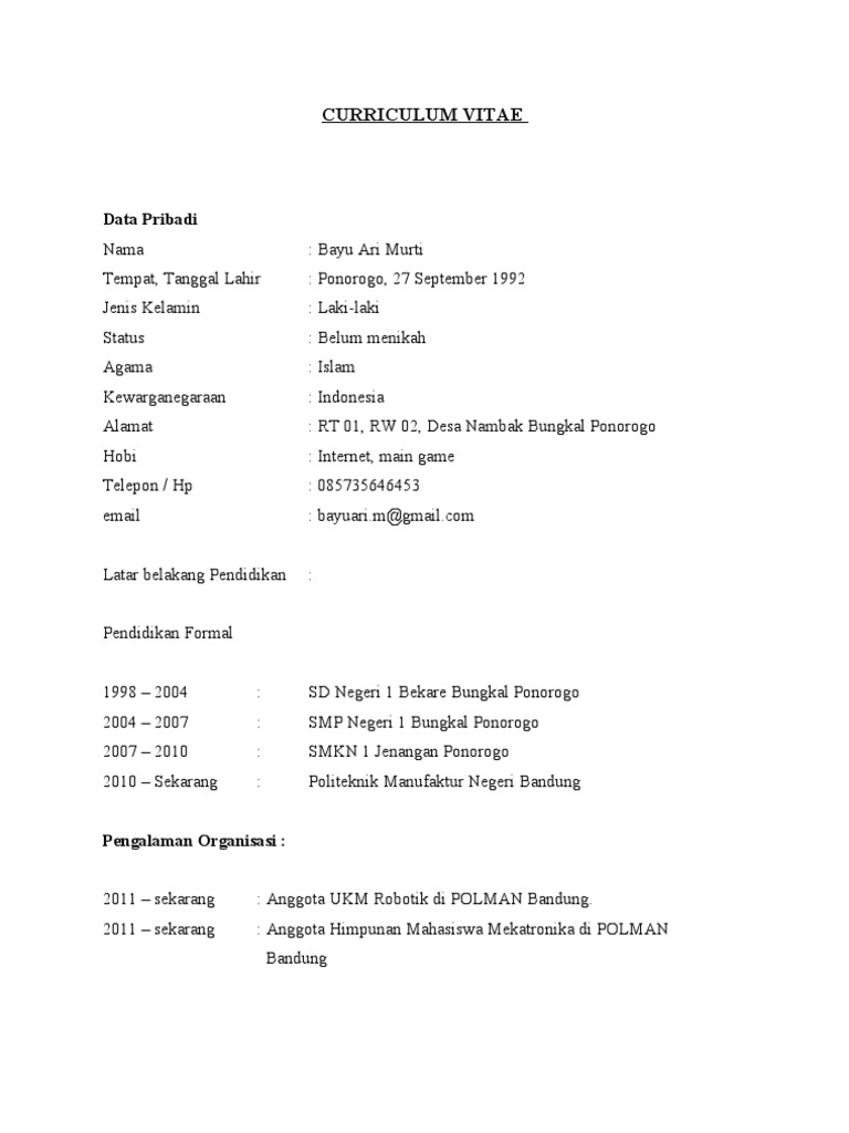 7 Contoh Daftar Riwayat Hidup / Contoh CV (Curriculum Vitae)