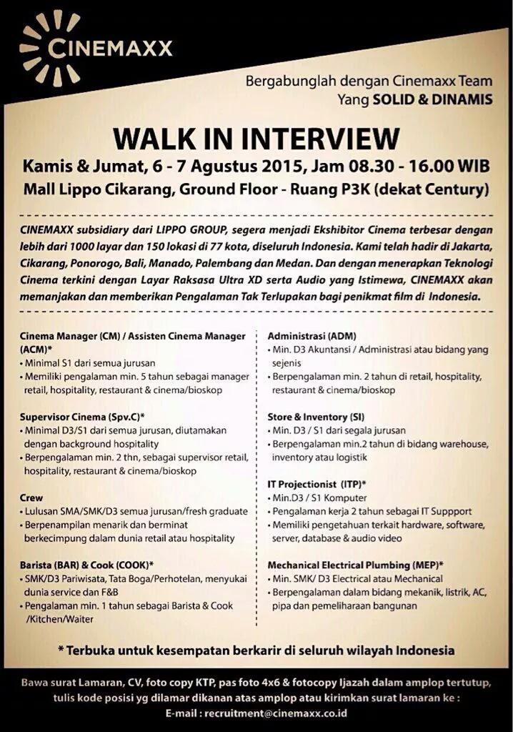 URBANCIKARANG.COM på Twitter: “Lowongan Kerja untuk bioskop @Cinemaxxtheater Mal Lippo Cikarang. Langsung dateng aja sob. http://t.co/sVSw8u01Hy”