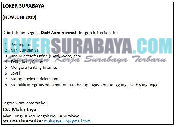 Bursa Kerja Surabaya Terbaru di CV. Mulia Jaya Juni 2019 - Lowongan Kerja Surabaya Oktober 2020 | Lowongan Kerja Jawa Timur Terbaru
