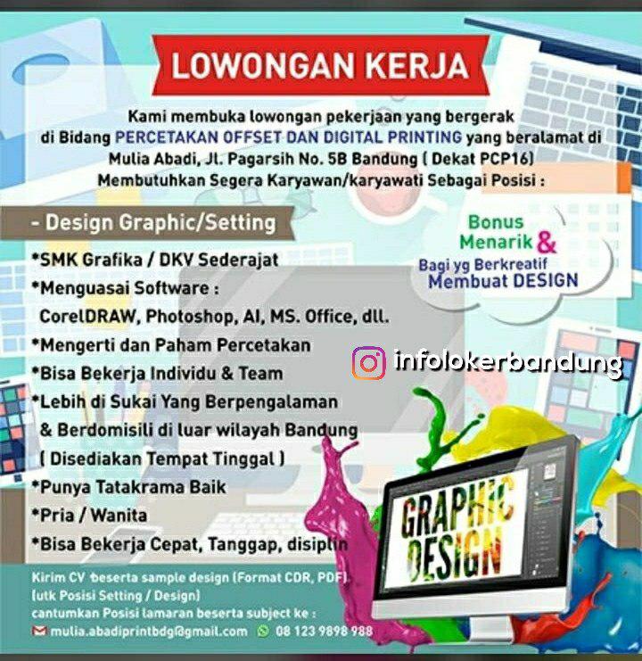 Lowongan Kerja Design Graphic Mulia Abadi Percetakan Offset dan Digital Printing Bandung Juli 2018 - Info Loker Bandung 2020