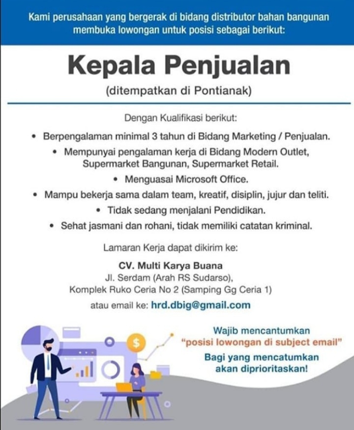 Lowongan Kerja CV. Multi Karya Buana Pontianak - JobsKalbar
