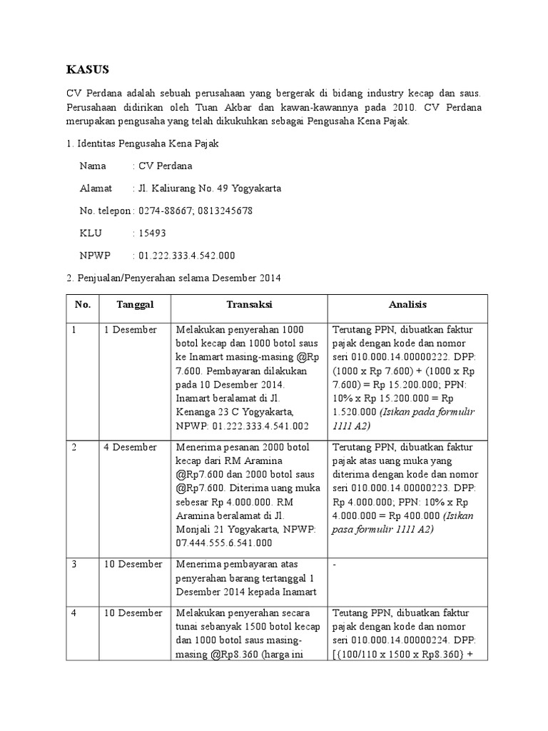 kasus - KASUS CV Perdana adalah sebuah perusahaan yang bergerak di bidang industry kecap dan saus Perusahaan didirikan oleh Tuan Akbar dan | Course Hero