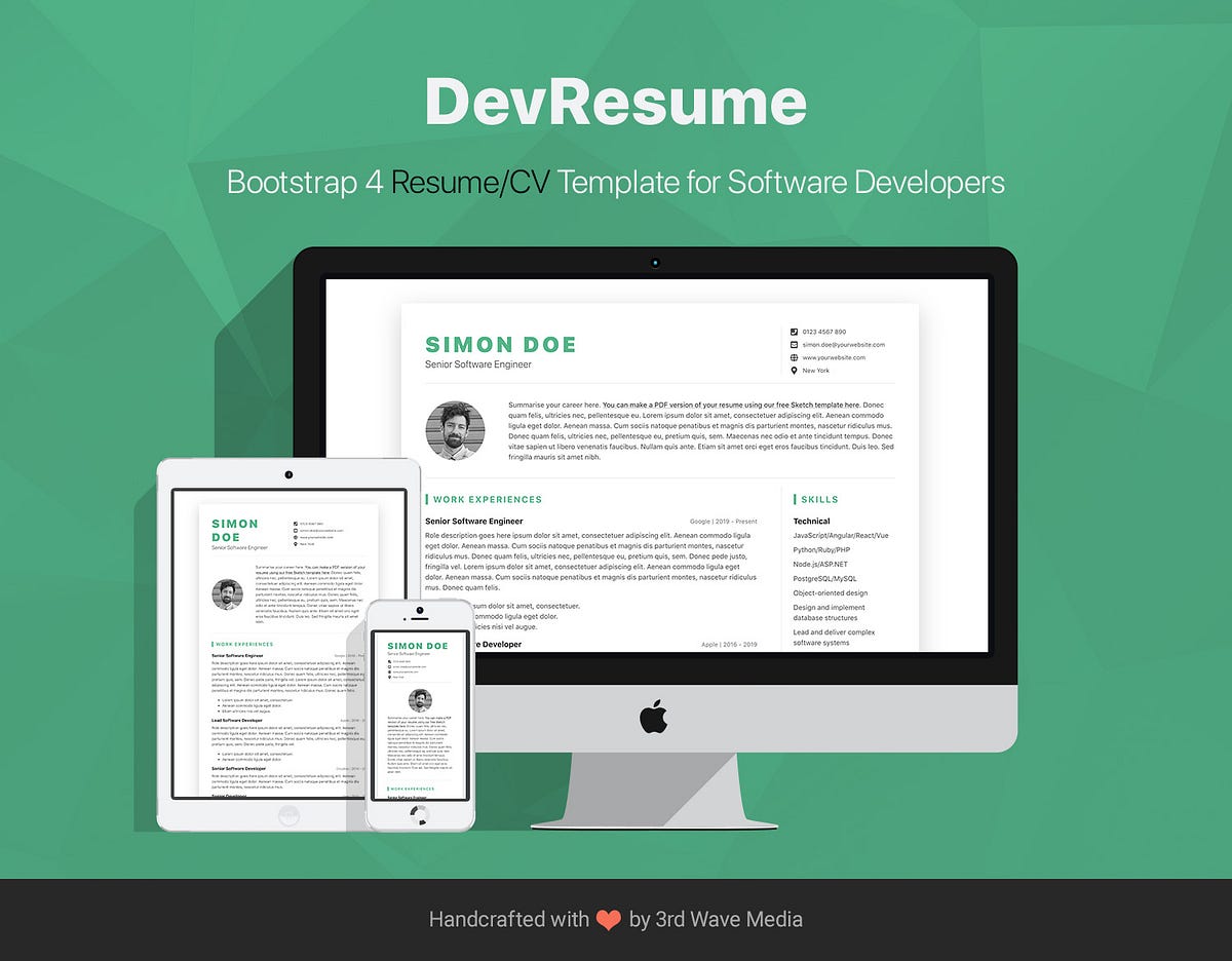 DevResume — Free Bootstrap 4 Resume/CV Template For Software Developers | by Xiaoying Riley | Medium