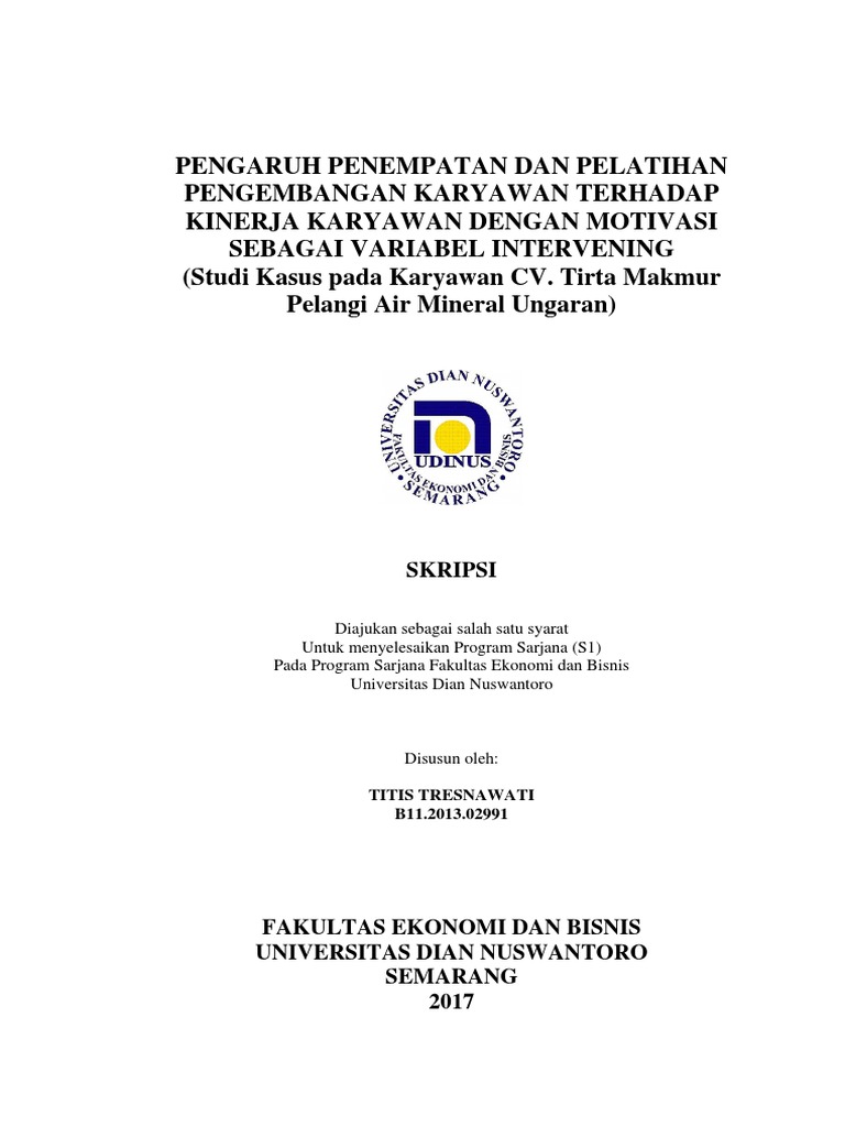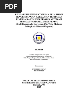 Pengaruh Penempatan dan Pelatihan Pengembangan Karyawan terhadap Kinerja Karyawan dengan Motivasi Sebagai Variabel Intervening (Studi Kasus pada Karyawan CV. Tirta Makmur Pelangi Air Mineral Ungaran) - UDiNus Repository