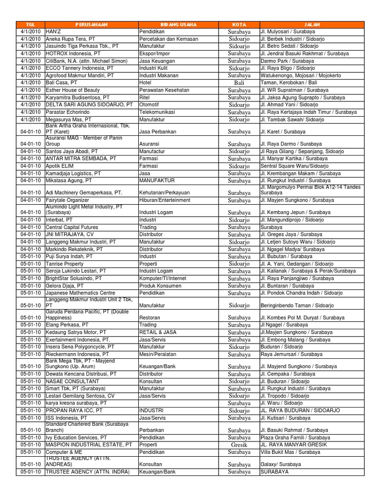 Daftar Perusahaan 2010