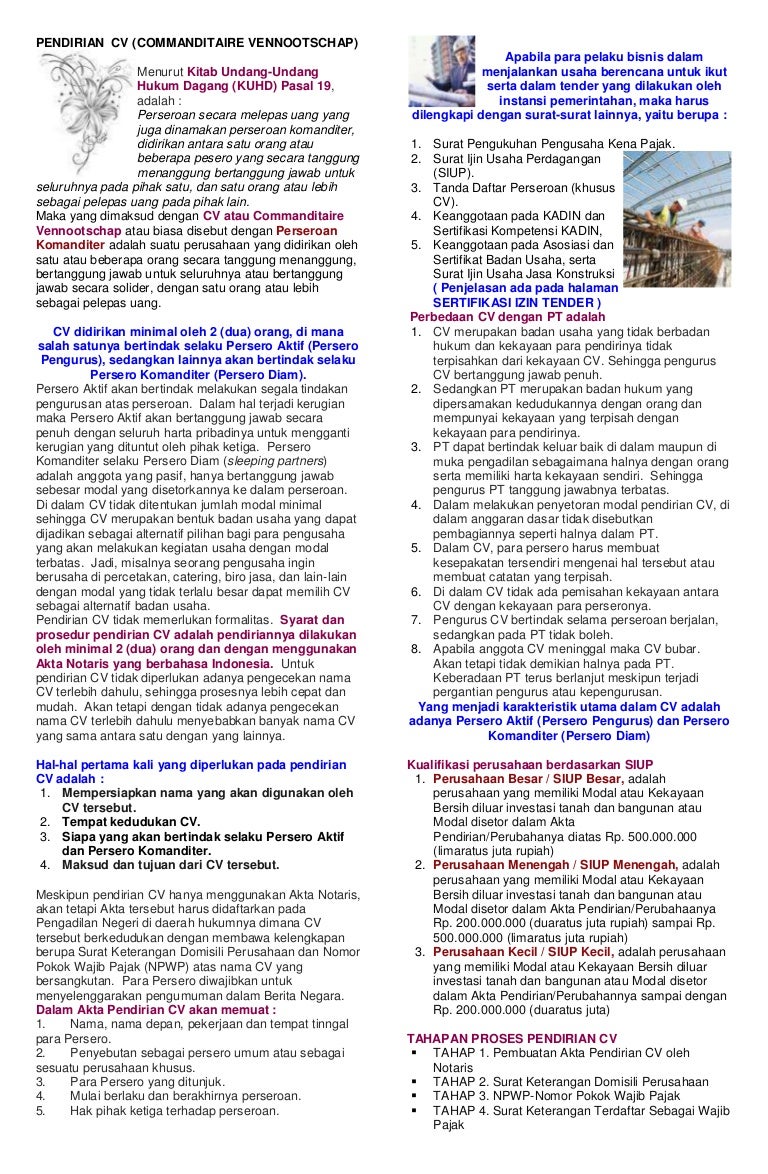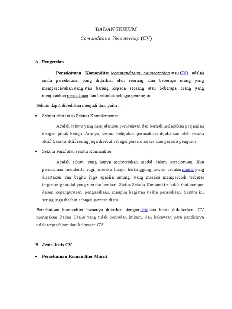 DOC) Perusahaan Komanditer / CV (Comanditaire Vennootschap) | Aria Ramawanda - Academia.edu