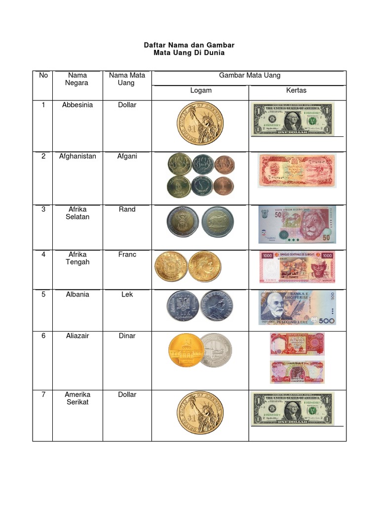 Daftar Nama Dan Gambar Mata Uang Di Dunia - [DOCX Document]