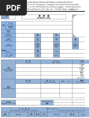 FORMULIR CV BEKERJA DI JEPANG | Sekolah Di JepangSekolah Di Jepang