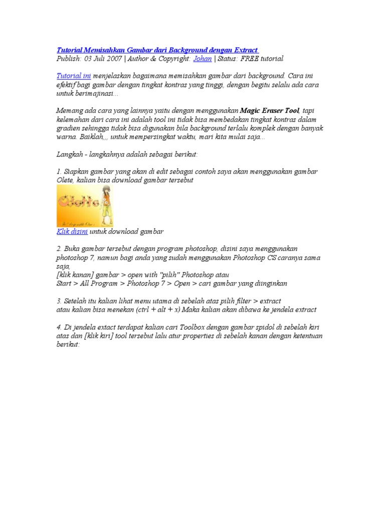 Johan Tutorial ini: Tutorial Memisahkan Gambar dari Background dengan Extract