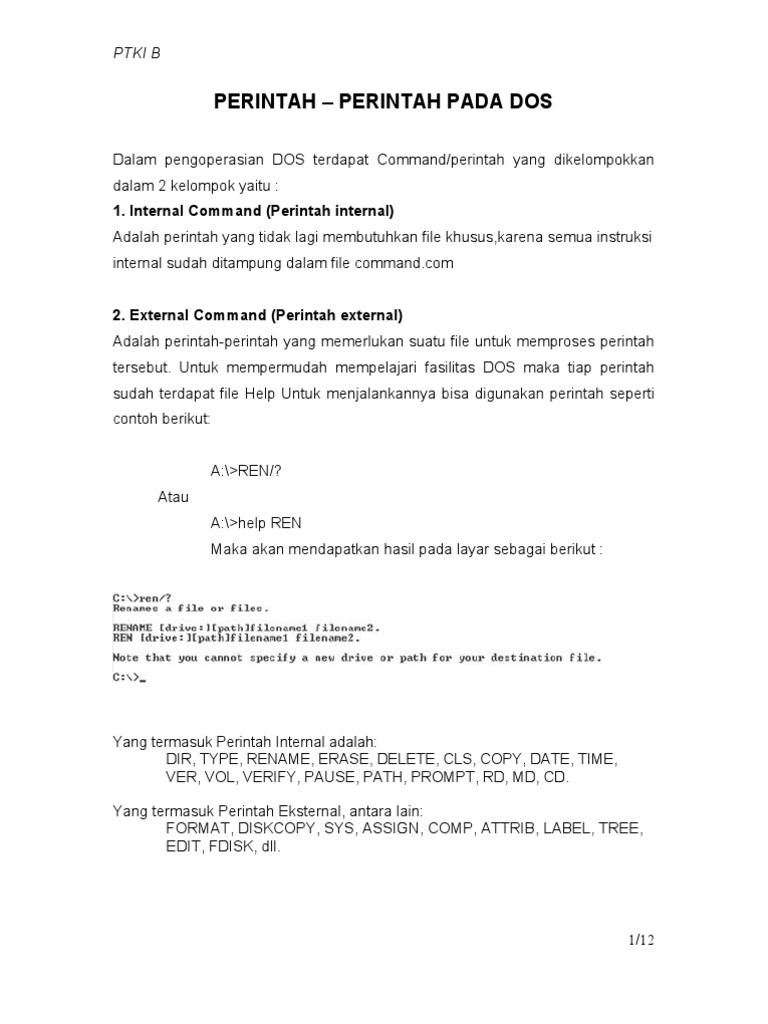 Kumpulan Perintah Dos Beserta Penjelasan Nya (Sumber : Gunadarma)