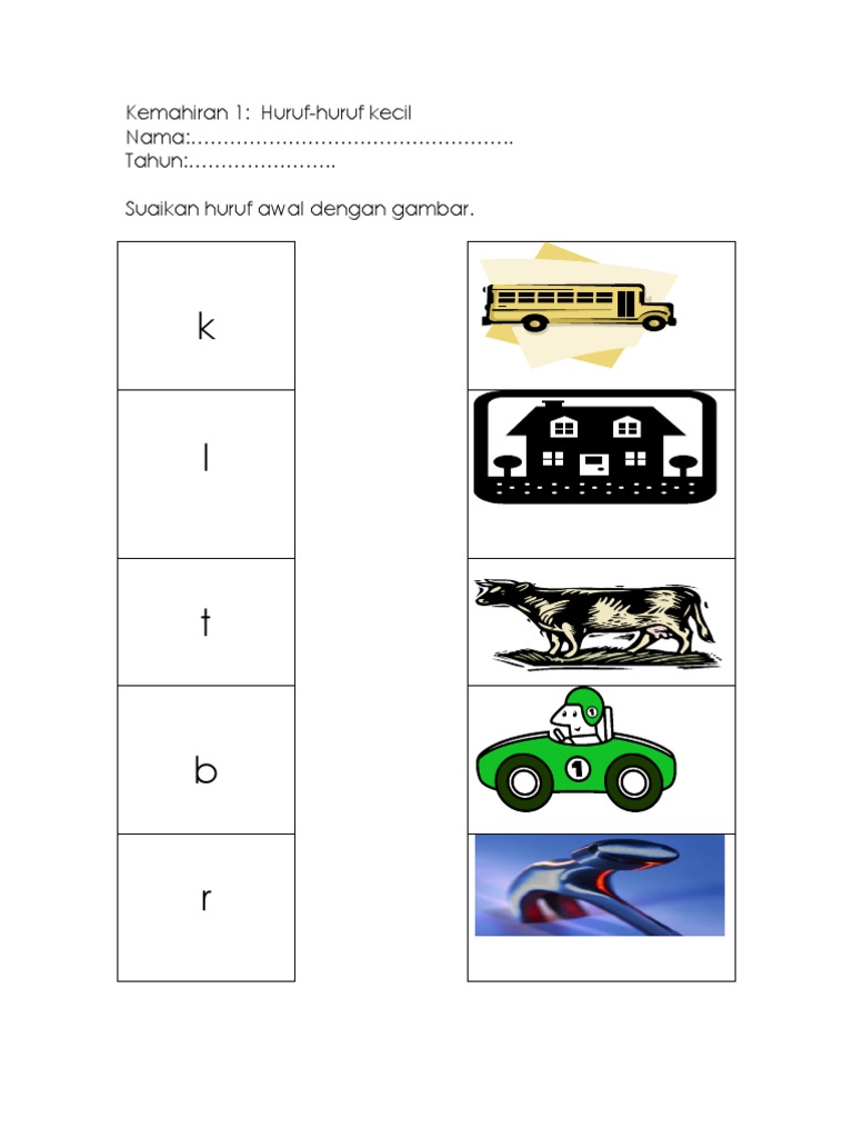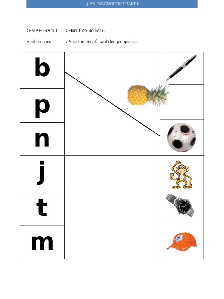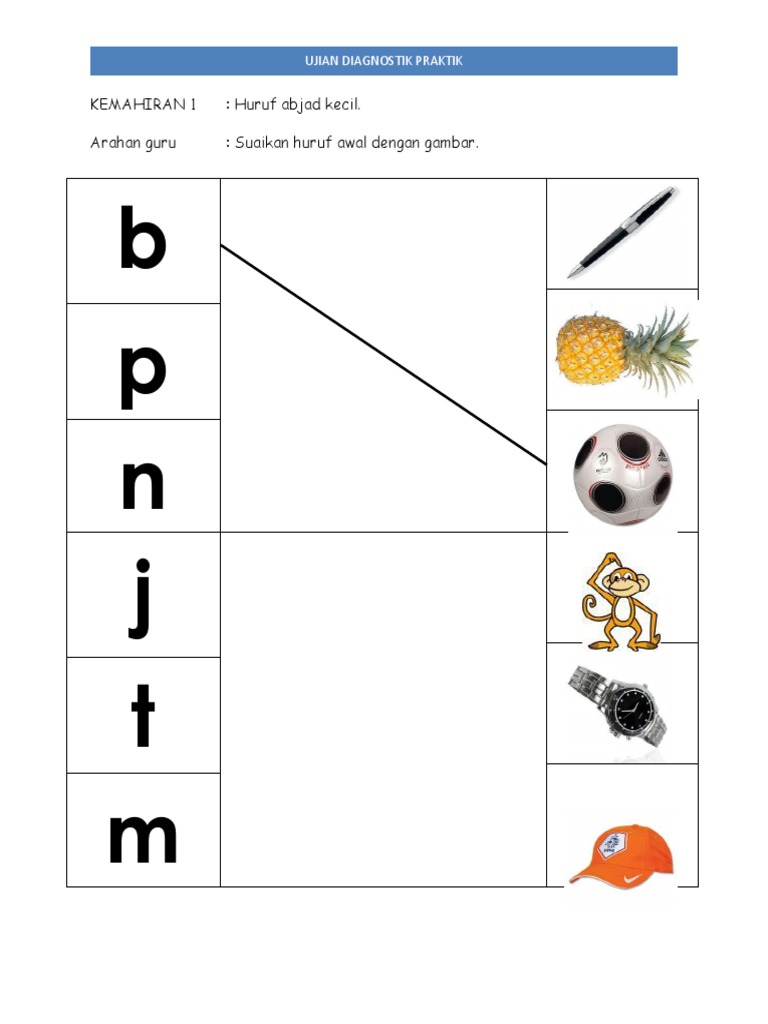 C D at am Gam Buku Epal Ibu: Contoh Ujian Diagnostik 1. Huruf abjad kecil 1a. Suaikan huruf dengan gambar