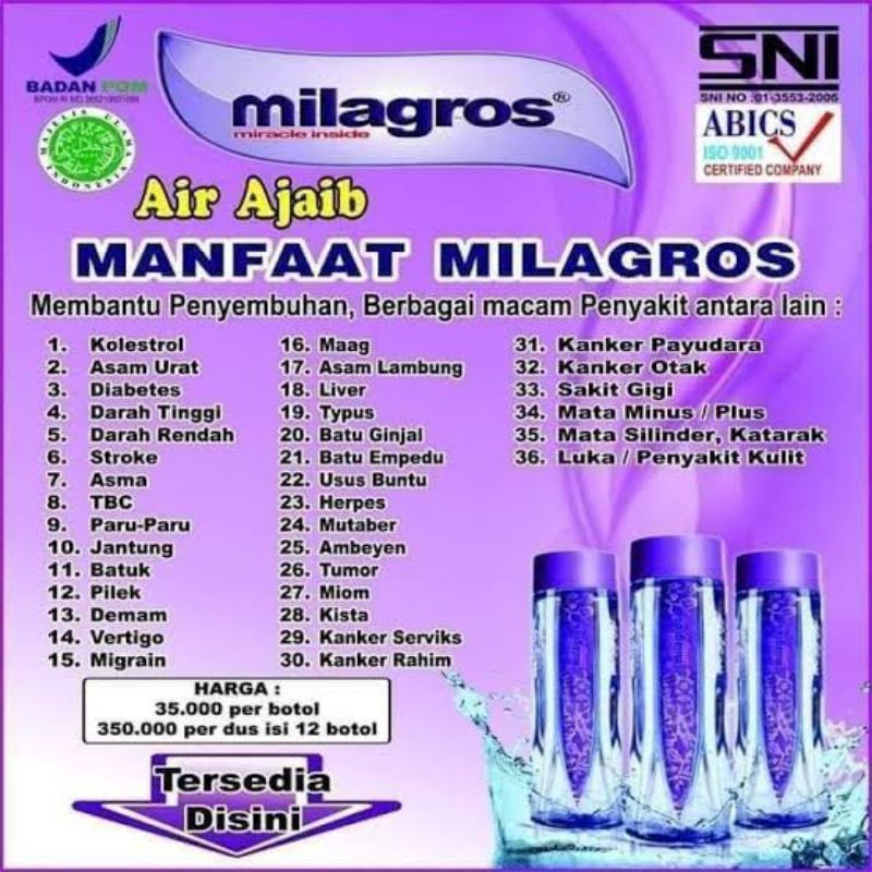 MENAKJUBKAN, Milagross, Milagros air, Milagros bekasi, Milagros spray, Milagros air ajaib Bangka Belitung Islands, Jakarta, South Sumatra, Tange… | Tahu, Ungu, Dewi