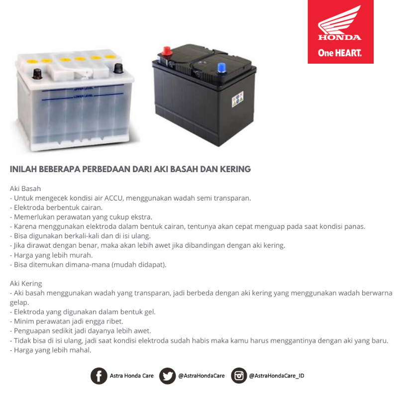 Astra Honda Care on Twitter: “Adakah diantara BroSist sekalian yang mau tau perbedaan Aki Kering dan Aki Basah? Yuk cek informasinya pada gambar berikut ini! Kalau ada yang mau ditanyakan, jangan ragu
