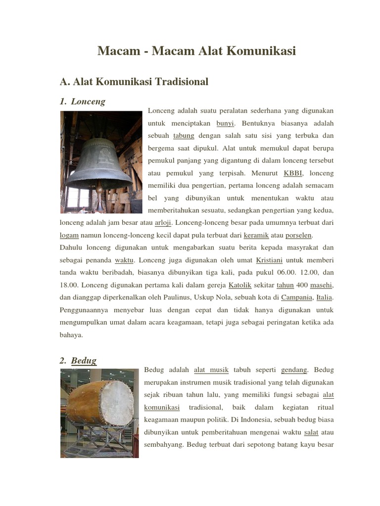 DOC) KLIPING ALAT KOMUNIKASI TRADISIONAL DAN MODERN | ALYA RAISA NADYA barabai - Academia.edu