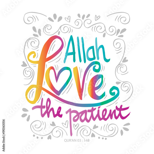 Allah love the patient. Quote quran. Hand lettering calligraphy. - Buy this stock illustration and explore similar illustrations at Adobe Stock | Adobe Stock