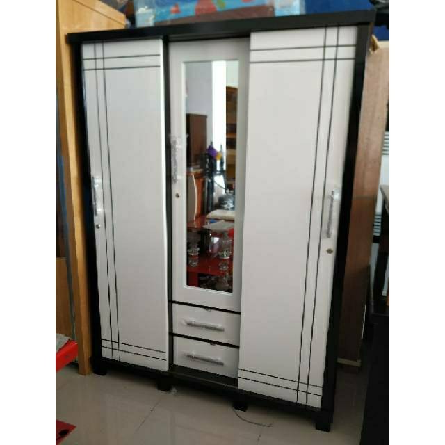 Lemari pakaian 3 pintu minimalis putih lis hitam. Model simple dan elegan. Free onkir jabodetabek. | Shopee Indonesia